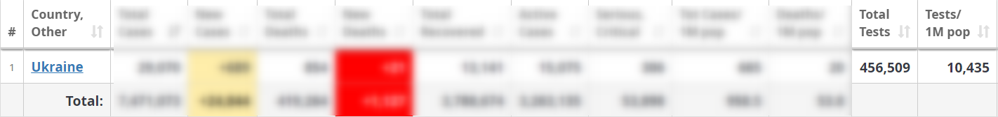 Продолжился рост и в июне. Если неделю назад Украина делала менее девяти тысяч тестов на миллион человек, то сейчас, по данным международного сервиса Worldometers, это число подбирается к 11 тысячам.