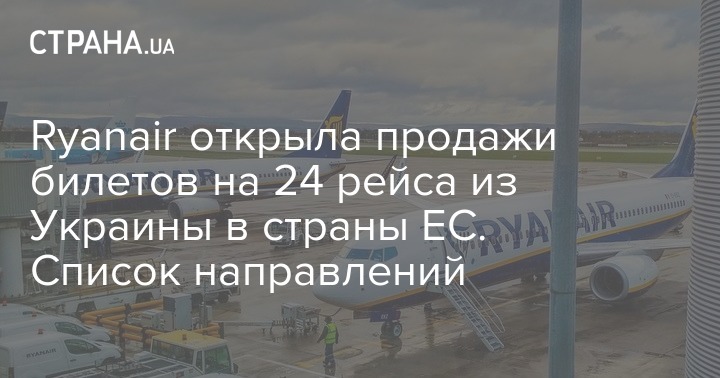 Крупнейший в Европе лоукостер Ryanair, который ранее объявил о возобновлении полетов из Украины в Италию, открыл продажи билетов на 24 рейса из Украины в страны Евросоюза.