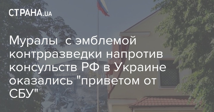 Мурал с изображением эмблемы Департамента контрразведки Службы безопасности Украины, который появился напротив консульства РФ в Харькове, - это "привет от СБУ" ко Дню России.