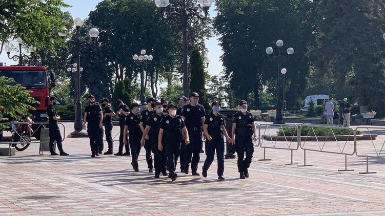 Под Веховной Радой дежурит полиция и приехали журналисты, а митингующие только собираются.