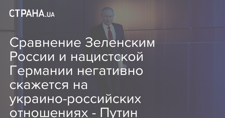 Президент Российской Федерации Владимир Путин заявил, что слова президента Украины Владимира Зеленского, который заявил об обоюдной вине СССР и Германию за начало Второй мировой войны и Холокост, негативно скажутся на отношениях между странами. Также Путин считает, что это заявление скажется негативно на самом Зеленском.