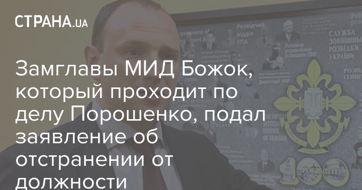 Замминистра иностранных дел Егор Божок, который проходит подозреваемым по делу о превышении власти экс-президентом Петром Порошенко, написал заявление об отстранении от должности. По заверению чиновника, он сделал это с целью обеспечить прозрачное расследование в рамках уголовного производства.