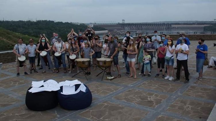 "Это не протесты, потому что на протесты мы уже выходили в феврале. Скорее, это своеобразные брейншторминги - обсуждение, что нам делать дальше. Каждый из филиалов присоединился, как мог. К примеру, Общественное Закарпатья выпустило небольшой фильм, мы же собрались на Хортице, которая для нас знаковая. К тому же, здесь есть свободное пространство, где можно было обеспечить дистанцию ​​между людьми и все соблюдения карантинных условий", - комментирует Ольга Вакало.