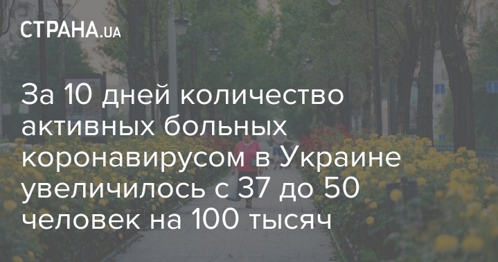 Показатель активных больных коронавирусом в Украине, который еще 23 июня был на уровне 48 на 100 тыс. населения, достиг отметки в 50 человек на 100 тысяч.