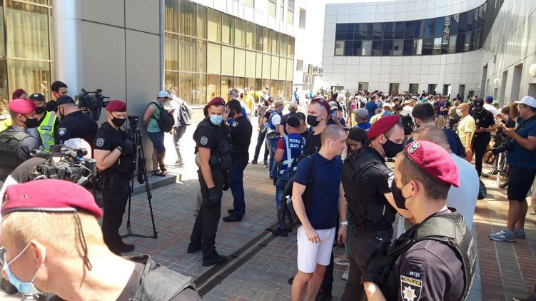 Массовка Стерненко под зданием суда. Фото: Страна