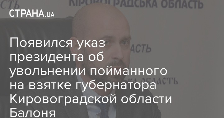 Офис президента Украины Владимира Зеленского опубликовал указ об увольнении губернатора Кировоградской области Андрея Балоня, который недавно попался на крупной взятке.