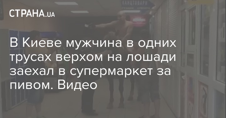 В Киеве мужчина в одних трусах заехал верхом на лошади в супермаркет за покупками.