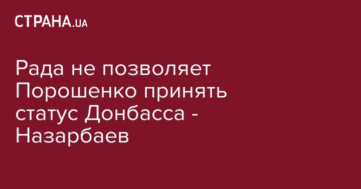 Верховная Рада не позволяет президенту Украины Петру Порошенко принять особый статус Донбасса. Об этом заявил президент Казахстана Нурсултан Назарбаев во время встречи с российским президентом Владимиром Путиным, сообщает ТАСС