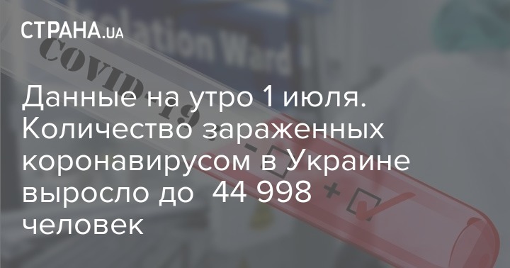 По состоянию на утро среды, 1 июля, количество зараженных коронавирусом в Украине выросло до 44 998 человек. Днем ранее, 30 июня, зараженных Covid-19 было 44 334 человека. За сутки болезнь подтвердилась еще у 664 граждан.