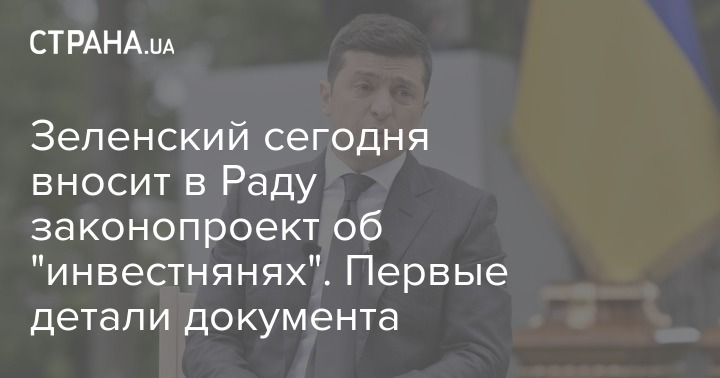 В среду, 1 июля, президент Украины Владимир Зеленский внесет в Раду законопроект "О государственной поддержке инвестиционных проектов со значительными инвестициями" - так называемый закон об "инвестиционных нянях".