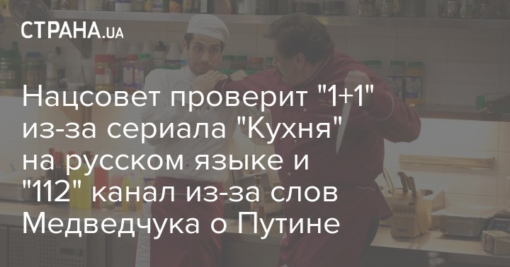 Национальный совет Украины по вопросам телевидения и радиовещания внепланово проверит телеканал "1+1". Причина проверки - невыполнение языкового законодательства во время трансляции российского комедийного сериала "Кухня". Также совет проверит телеканал "112 Украина" за трансляцию мнения народного депутата Виктора Медведчука.