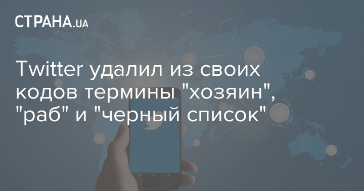 "Платформа социальных сетей Twitter удалила термины "хозяин", "раб" и "черный список" в пользу более инклюзивного языка", - говорится в сообщении.