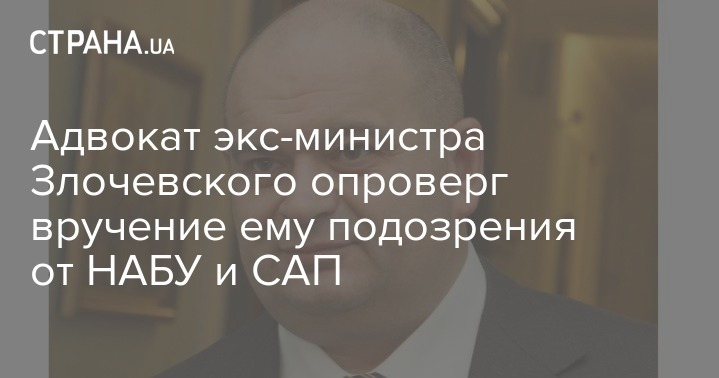 Сторона защиты экс-министра Николая Злочевского опровергла вручение своему клиенту подозрения о совершении уголовного преступления, о чем ранее заявили в НАБУ и САП по делу о попытки дачи взятки.