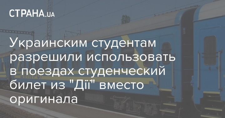 Государственная компания "Укрзализныця" (УЗ) начала принимать цифровой студенческий билет с мобильного приложения "Дія". Студенты при посадке в поезд вместо пластикового оригинала могут предъявить цифровой документ с приложения. Цифровой студенческий билет также позволяет путешествовать поездом со скидкой 50%.