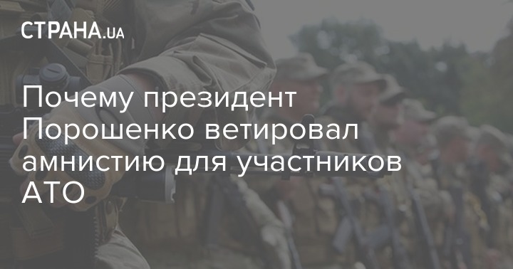 Президент Петр Порошенко ветировал закон, объявляющий амнистию и распространяющий ее в 2016 году на осужденных участников АТО. Об этом свидетельствуют данные на странице законопроекта на сайте Верховной Рады.