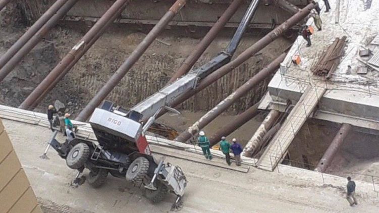 Опубликовано фото упавшего во время строительства метро на Виноградаре автокрана
