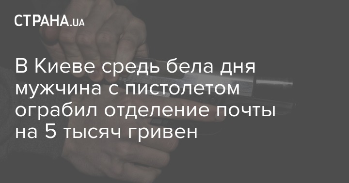 В пятницу, 10 июля, неизвестный вооруженный мужчина ограбил почтовое отделение в Киеве. Он выстрелил из пистолета в потолок, забрал из кассы более пяти тысяч гривен и скрылся с места преступления.