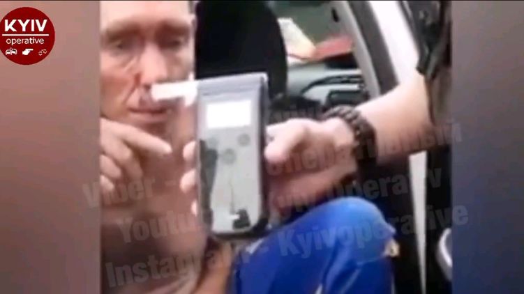 Водитель в невменяемом состоянии сдает тест на алкоголь. Скриншот из видео
