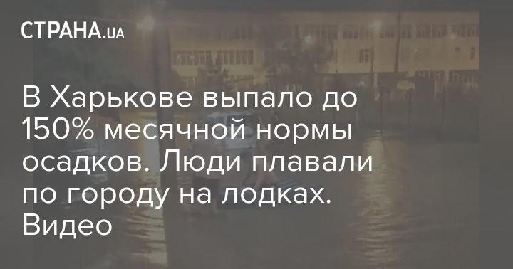 Харьковчане плыли на лодке по улице после сильного дождя. Скриншот из видео