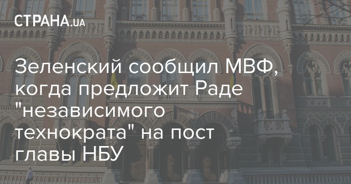 Президент Украины Владимир Зеленский пообещал предложить Верховной Раде кандидатуру "независимого технократа" на пост главы Национального банка до конца недели.