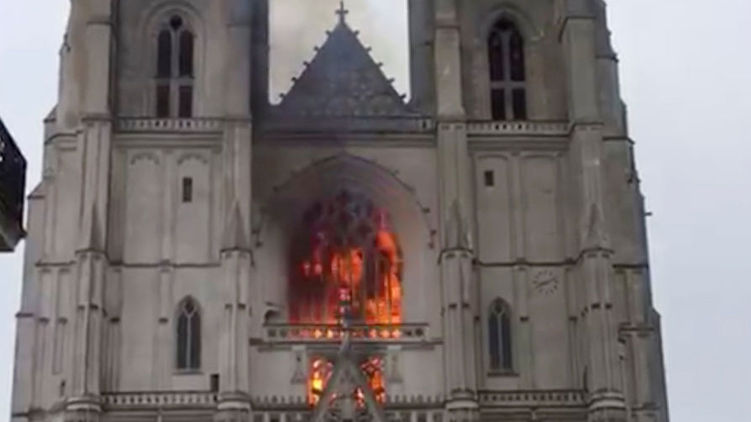 "После Нотр-Дама в огне собор Святых Петра и Павла в центре Нанта. Поддерживаю наших пожарных, которые идут на все риски, чтобы спасти эту готическую жемчужину города бретонских герцогов", — говорится в сообщении.