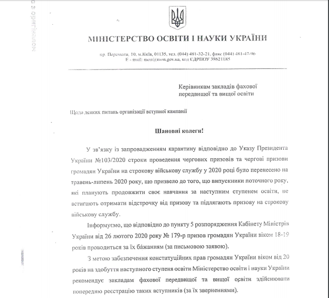 После таких случаев в МОН заявили, что абитуриенты массово обращаются в учреждения высшего образования по поводу получения повесток от военкоматов. И обратились к Минобороны с просьбой урегулировать вопрос.