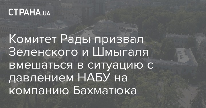 Комитет Рады призвал Зеленского и Шмыгаля вмешаться в ситуацию с давлением НАБУ на компанию Бахматюка