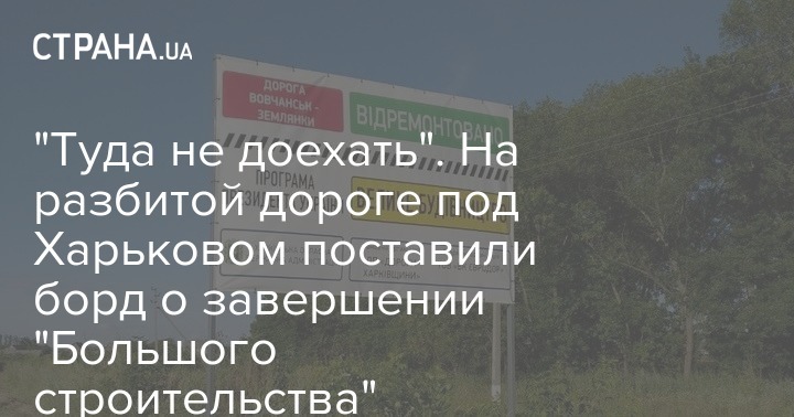 "Туда не доехать". На разбитой дороге под Харьковом поставили борд о завершении "Большого строительства"