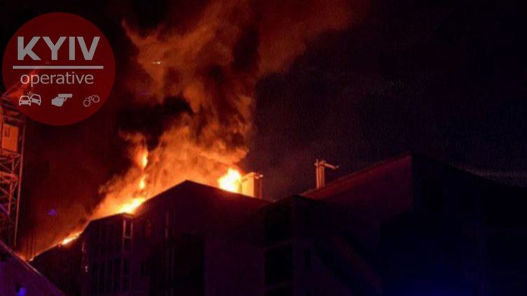На крыше столичной новостройки начался пожар. Фото: Facebook / "Киев оперативный"