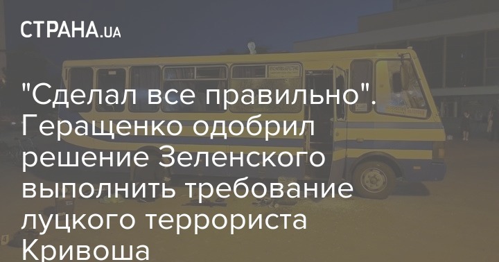 "Сделал все правильно". Геращенко одобрил решение Зеленского выполнить требование луцкого террориста Кривоша