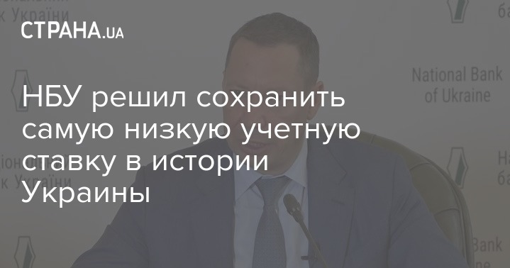В правлении Национального банка Украины приняли решение сохранить учетную ставку на уровне 6% годовых с 24 июля 2020 года, что является самым низким ее уровнем за всю историю независимой Украины.