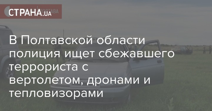 В Полтавской области правоохранители ищут террориста Роман Скрипника, который 23 июля взял в заложники полицейского, требуя, чтобы его не арестовали за угон автомобиля. Скрипник бросил машину и скрылся в лесопосадке, где его следы пытаются найти с помощью собак и разнообразной техники.