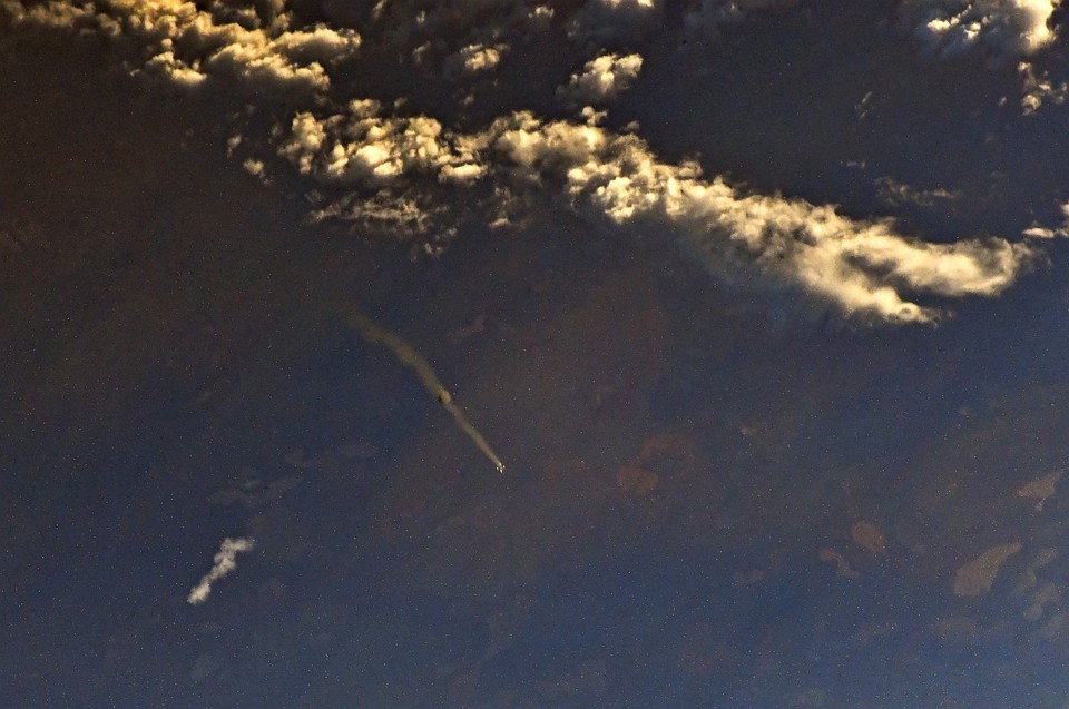 Российский космонавт Иван Вагнер, который сейчас находится на МКС, снял запуск с борта станции и выложил фото в своей Twitter.