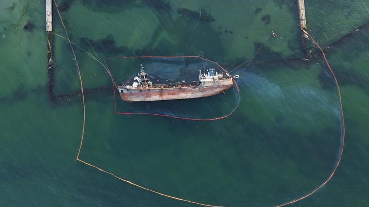 "В АМПУ быстро отреагировали: доставили и установили второй круг бонового заграждения, чтобы закрыть вход со стороны моря и не допустить распространения загрязнения акватории порта, организовали локализацию остатков нефтепродуктов за пределами бонового пространства возле затонувшего танкера", - отметил Криклий.