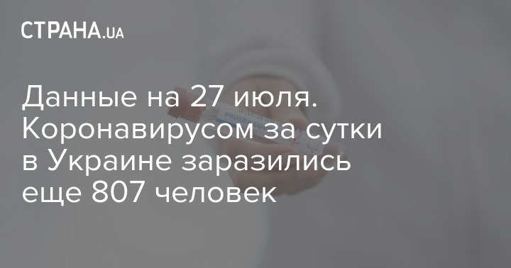 По состоянию на утро понедельника, 27 июля, коронавирус подтвердился еще у 807 граждан Украины. Общее число заболевших достигло таким образом 65 656 человек. Вчера, 26 июля, общее число зараженных в Украине составляло 64 849 человек.