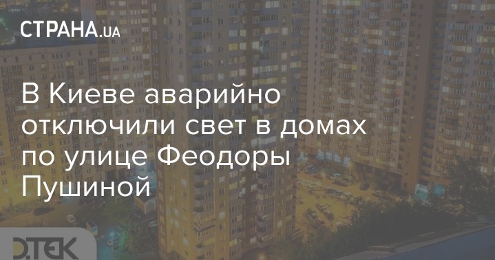 Вечером в среду, 29 июля, в Киеве отключили свет в многоэтажном доме и части частного сектора по улице Феодоры Пушиной. На этот шаг энергетики пошли из-за повреждения двух кабельных линий.