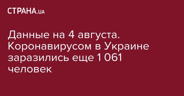 По состоянию на утро вторника, 4 августа, количество зараженных коронавирусом в Украине увеличилось на 1 061 человек. Общее число заболевших украинцев достигло отметки в 74 219 человек. Вчера, 3 августа, в стране насчитывалось 73 158 зараженных.