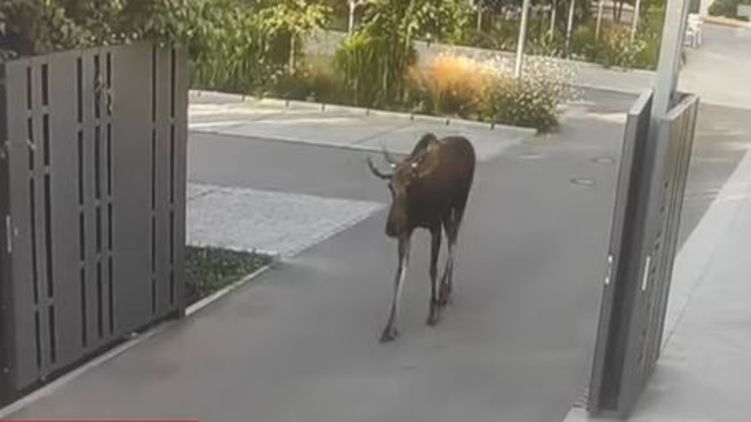 Появилось видео, как дикий лось забрел на конфетную фабрику Порошенко в Киеве