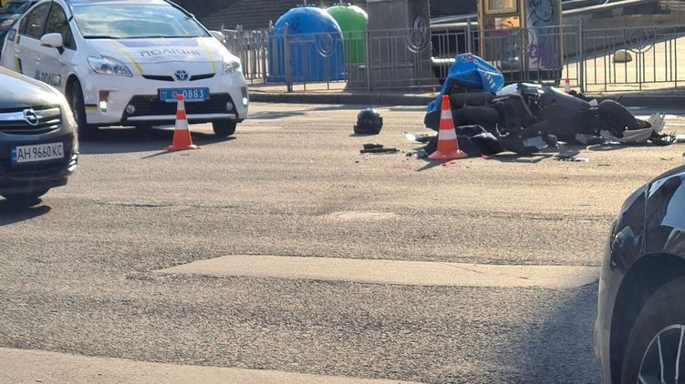 В центре Киева доставщик пиццы попал под колеса двух автомобилей. Фото