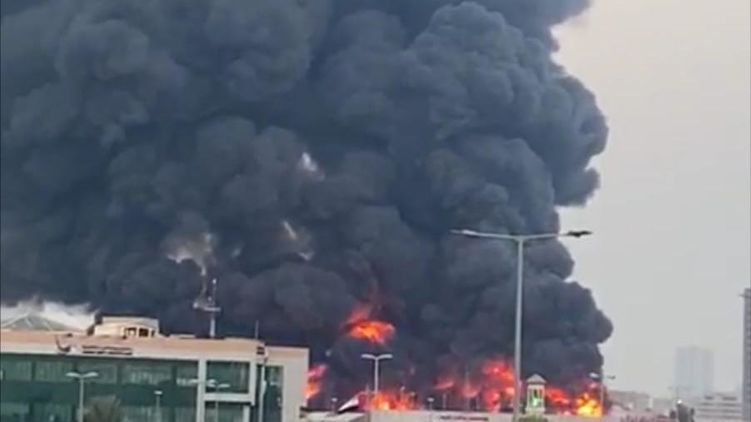 На крупнейшем рынке в ОАЭ вспыхнул пожар. Небо затянуло черным дымом. Видео