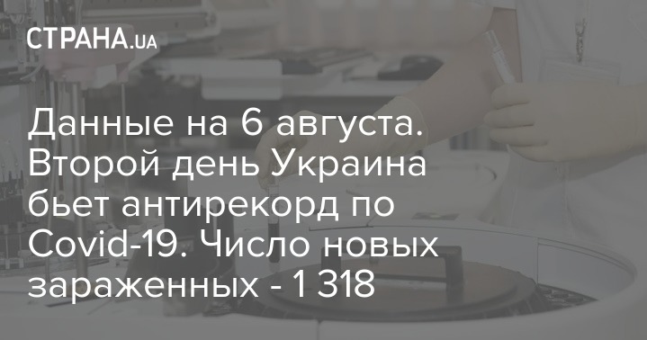 По состоянию на утро четверга 6 августа, количество зараженных коронавирусом в Украине увеличилось на 1 318 человек. Это новый печальный антирекорд, причем второй день подряд. Общее число заболевших украинцев достигло отметки в 76 808 человек. Вчера, 5 августа, в стране насчитывалось в общей сложности 75 490 зараженных.