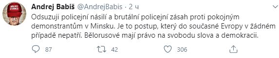 13:44 Премьер-министр Чехии Андрей Бабиш осудил применение силы по отношению к протестующим в Минске
