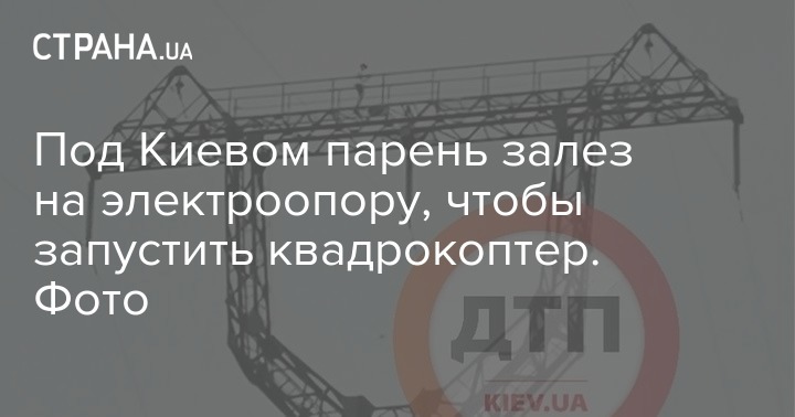 В Вышгороде Киевской области очевидцы сняли на огромной электрической опоре молодого человека, который с риском для жизни залез на сооружение, чтобы запустить квадрокоптер.