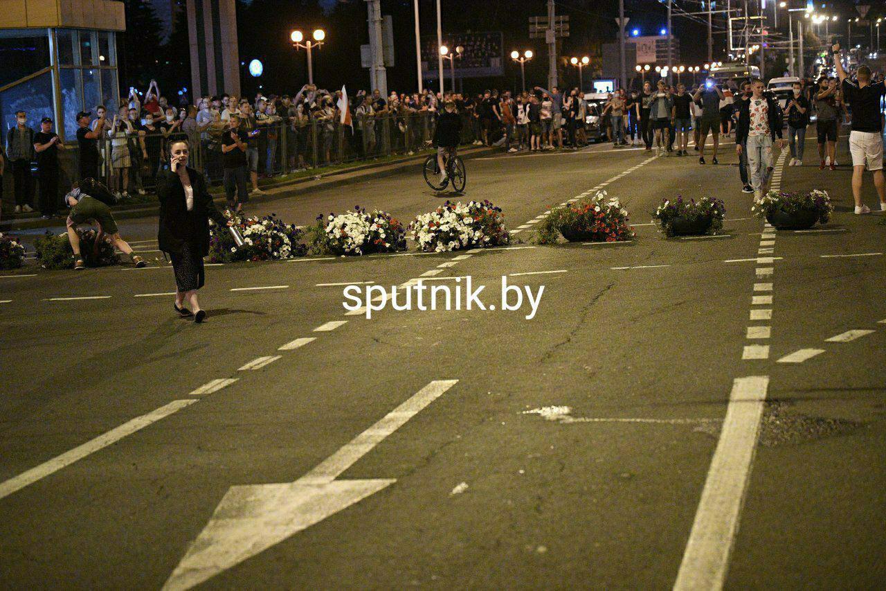 22:40 Минск, протестующие пытаются соорудить баррикады на улице Притыцкого по направлению от центра: установили три пластиковых мусорных бака, вазоны с цветами.
