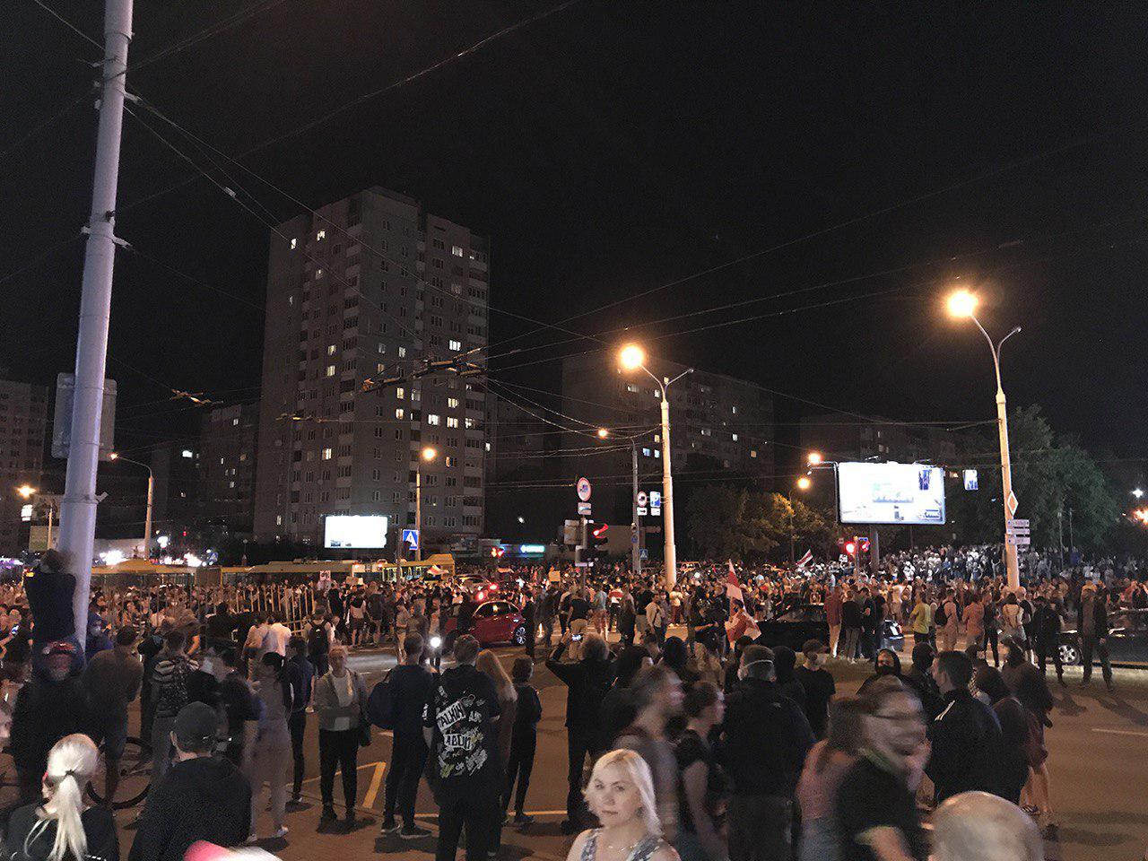 20:34 В микрорайоне Грушевка в Минске собираются люди.