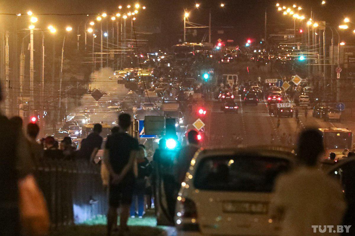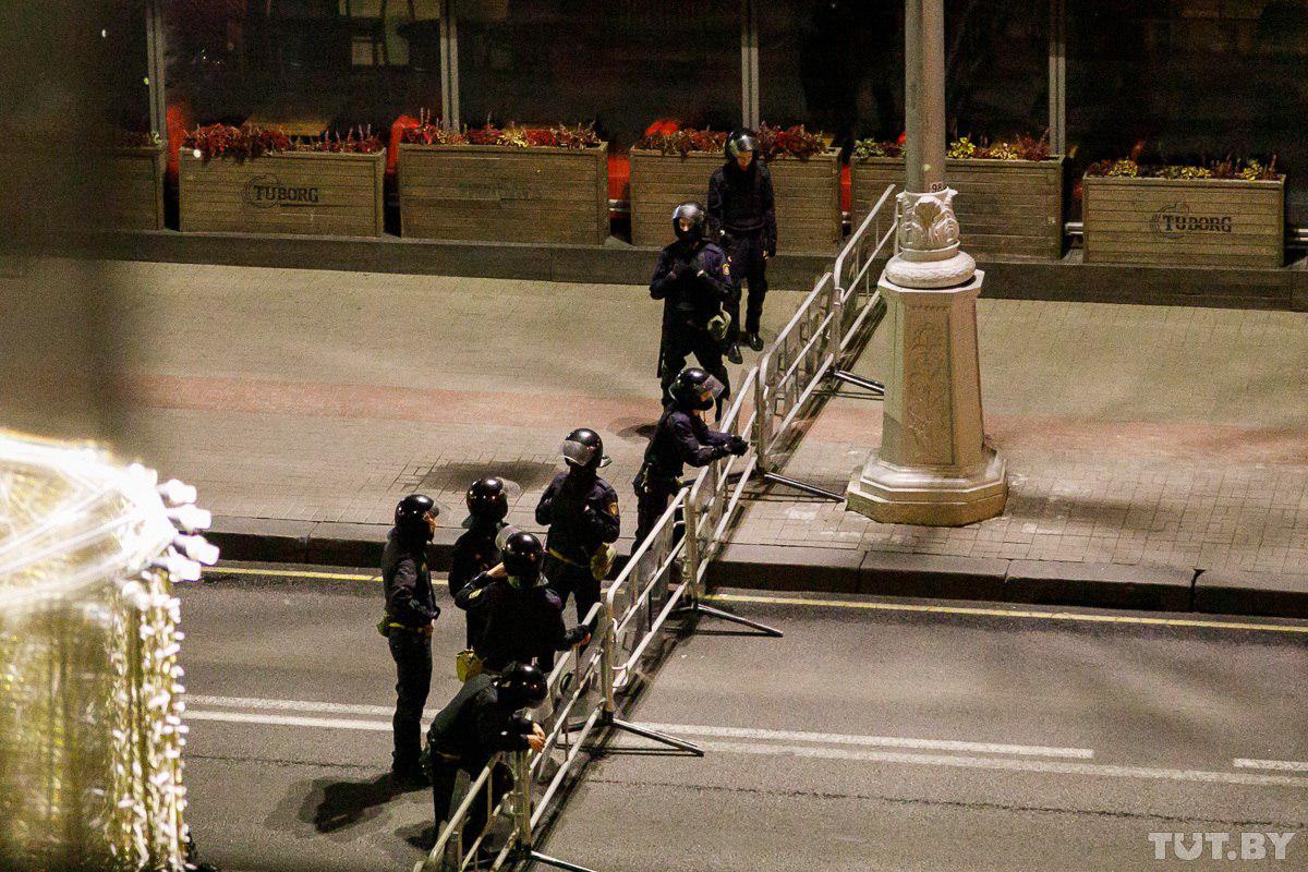00:33 Белорусские СМИ пишут, что вверх по улице Притыцкого, к "Авроре" двинулись более сотни бойцов ОМОНа со щитами. Была слышна непродолжительная стрельба, предположительно из помповых ружей.