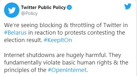 20:15 Твитер фиксирует попытки блокировки соцсети на территории Беларуси.