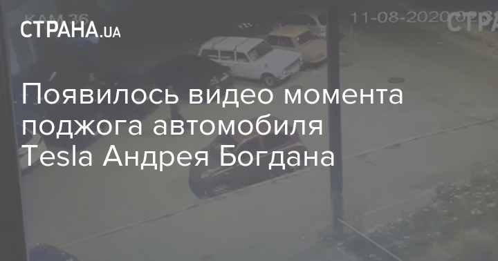 "Теслу" Богдана подожгли около 02:40 11 августа. Скриншот из видео