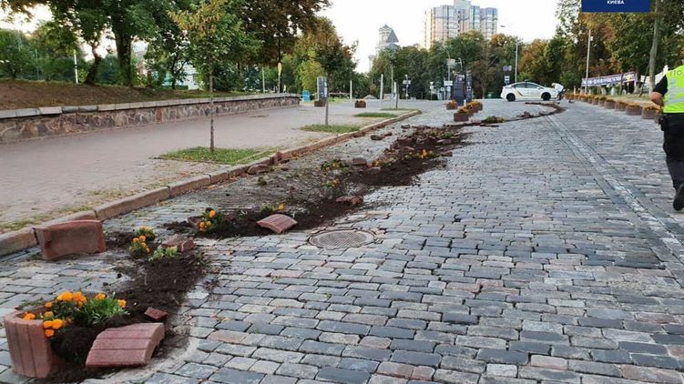 В Киеве пьяный водитель за рулем Lexus сбил клумбы в центре города. Фото: Facebook/ Алексей Белошицкий