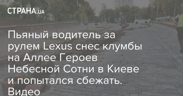 В Киеве пьяный водитель за рулем Lexus сбил клумбы в центре города. Скриншот: Facebook/ Алексей Белошицкий